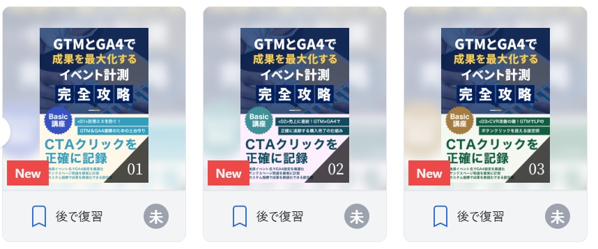 本講座では、ランディングページなどに配置されたボタンクリックを正確に計測し、コンバージョンに至らないユーザーの興味関心を把握するGA4イベント計測技術を習得します。習得できる主なスキルは以下の通りです。