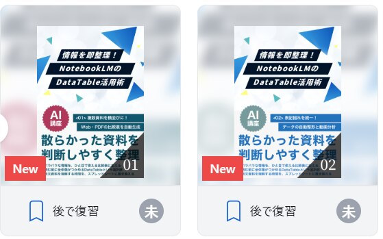 本講座では、NotebookLMに新たに追加されたDataTable機能を活用し、複雑な情報を瞬時に整理する方法を習得します。習得できる主なスキルは以下の通りです。